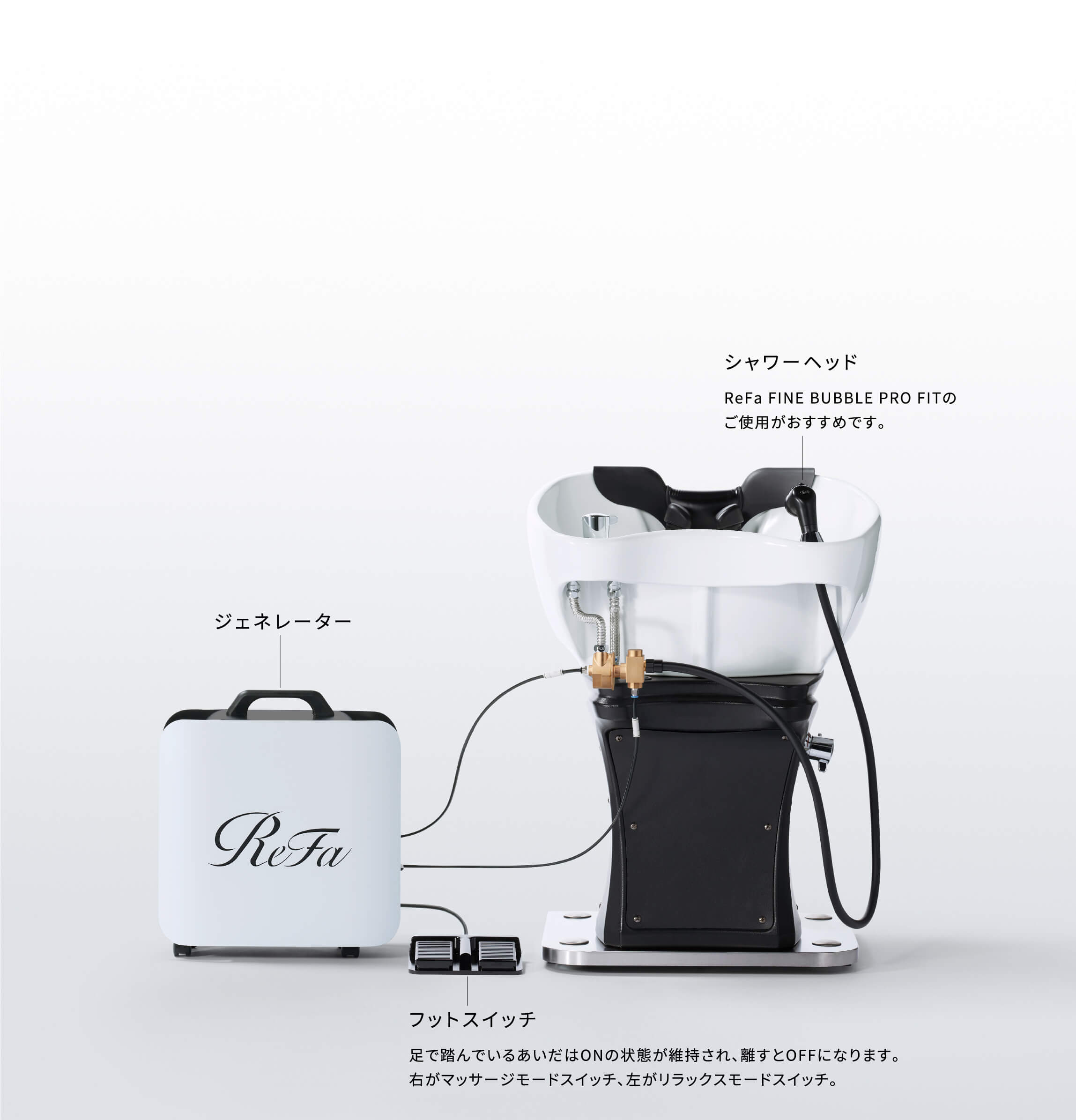 サロン専用機器だからこそ、家庭用シャワーヘッドとは異なる発生方式を採用。